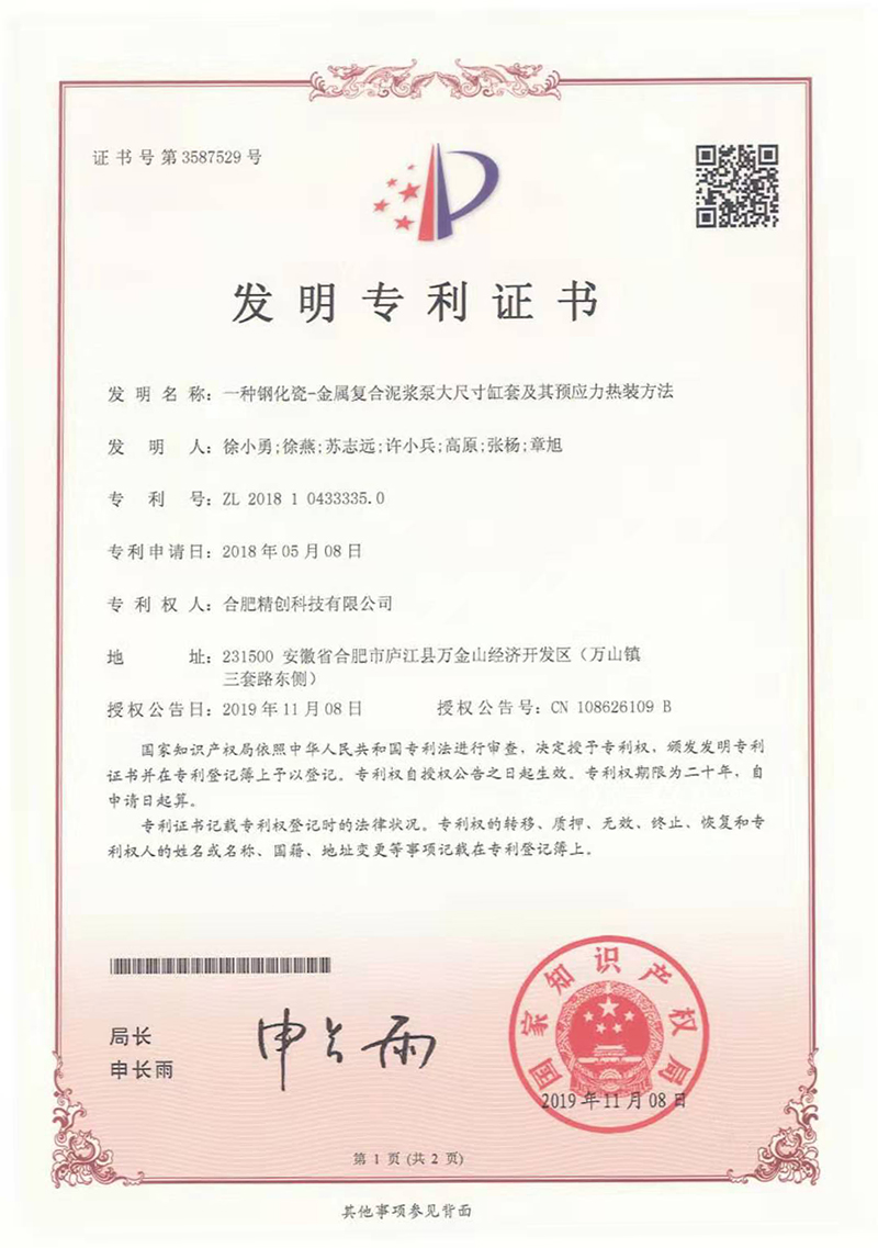 (2018發明專利)一種鋼化瓷-金屬復合泥漿泵大尺寸缸套及其預應力熱裝方法