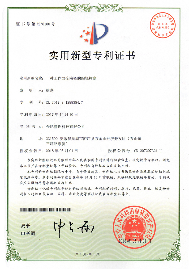 (2018實用新型)一種輕質陶瓷柱塞